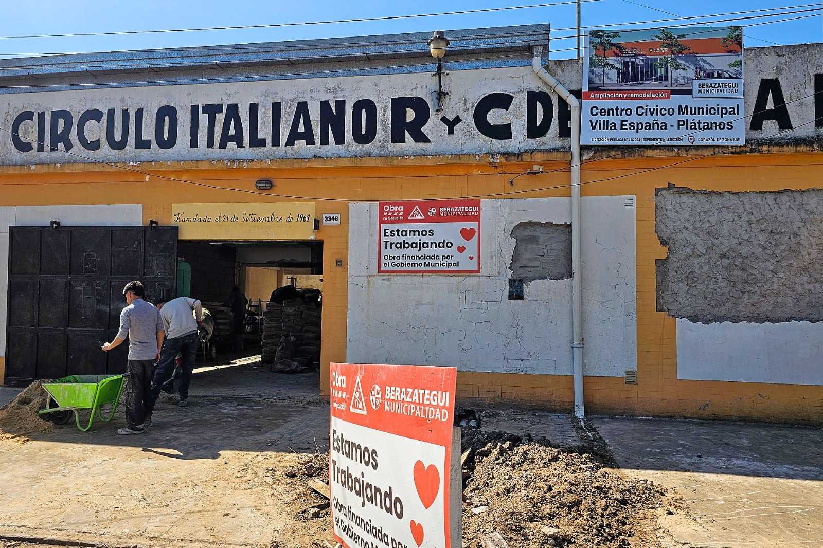 Continúan las obras en el futuro Centro Cívico Municipal Villa España – Plátanos, que funcionará en un sector del Círculo Italiano. La reforma y ampliación del lugar se está realizando con financiamiento íntegramente municipal. Su avance actual es del 30% y se prevé su finalización para dentro de cuatro meses, aproximadamente.