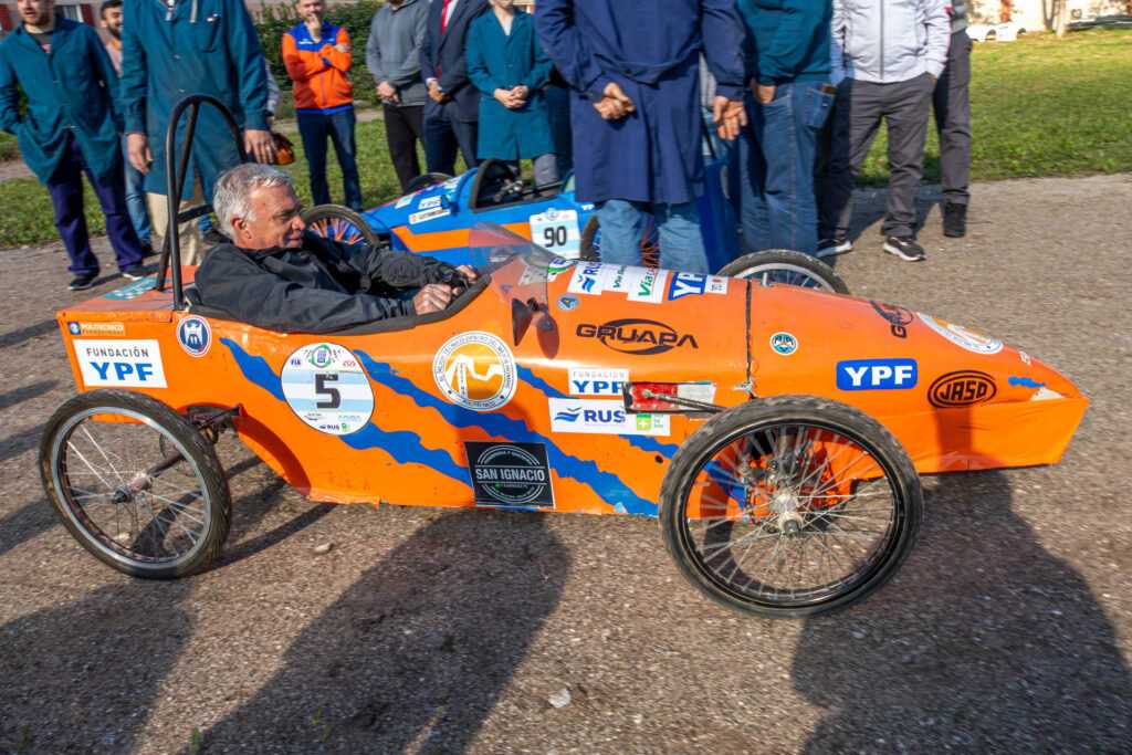 Durante una visita a la Escuela Secundaria Técnica N° 3 de Berazategui, el intendente Carlos Balor se subió a uno de los autos eléctricos diseñados y construidos por sus estudiantes, en una demostración del trabajo técnico y de innovación impulsado por este emblemático establecimiento educativo público local.