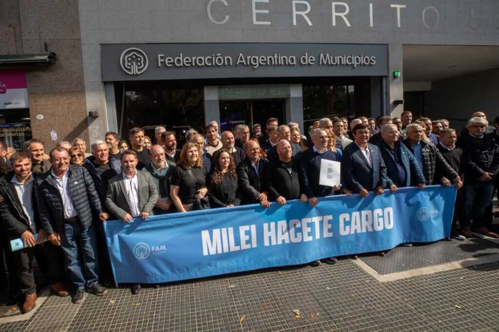 La jornada comenzó en la sede de la Federación Argentina de Municipios (FAM), donde los intendentes firmaron el documento y luego marcharon hacia la sede de la Cartera que conduce la ministra Sandra Pettovello.
